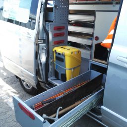 Dieses Fahrzeug wird zur Instandhaltung oder Reparatur von Industriemaschinen verwendet. Damit die Monteure alle Werkzeuge und Kleinteile bei den Kunden haben, wurde bei der Planung das gesamte Inventar der Fahrzeuge aufgenommen.