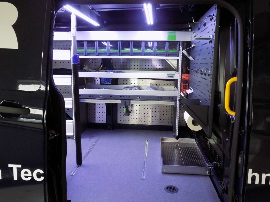 Dieses Fahrzeug wird zur Instandhaltung oder Reparatur von Industriemaschinen verwendet. Damit die Monteure alle Werkzeuge und Kleinteile bei den Kunden haben, wurde bei der Planung das gesamte Inventar der Fahrzeuge aufgenommen.