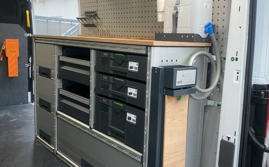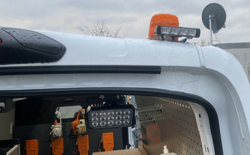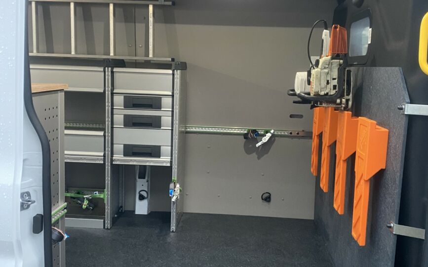- Verstärkte Fahrzeugtrennwand mit Kettensägenhalterung